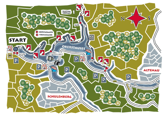 müssen Sie die Bundesstraße 498 nehmen. Der Okerstausee liegt zwischen Oker und Altenau. Sie können aber auch mit dem Bus 681 anreisen. Steigen Sie an der Haltestelle "Okerterrassen" aus, die direkt an der