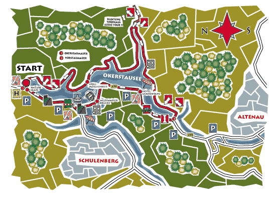 Kommen Sie mit dem Auto, müssen Sie die B 498 nehmen. Der Okerstausee liegt zwischen Oker und Altenau. Sie könnnen auch mit dem Bus anreisen. Steigen Sie an der Haltestelle Okerterrassen aus, die direkt an der Hauptstaumauer